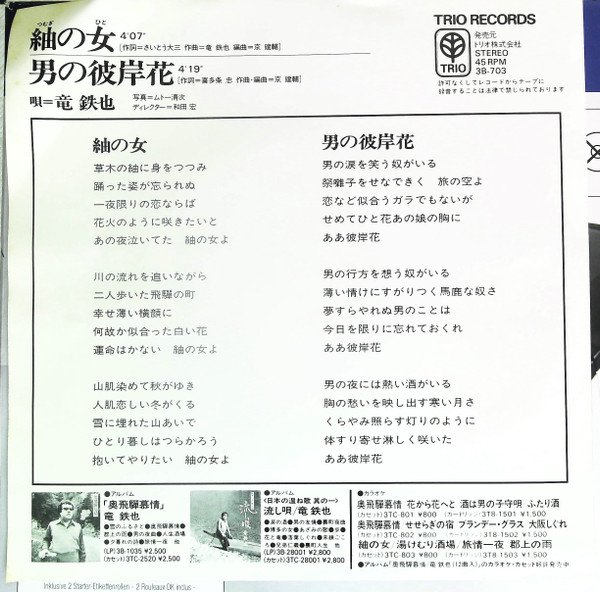 竜鉄也 : 紬の女 / 男の彼岸花 (7", Single)Trio Records
