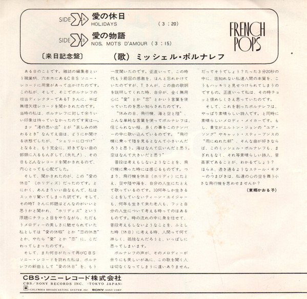 Michel Polnareff – 愛の休日 = Holidays / 愛の物語 = Nos Mots D’amour (7″)