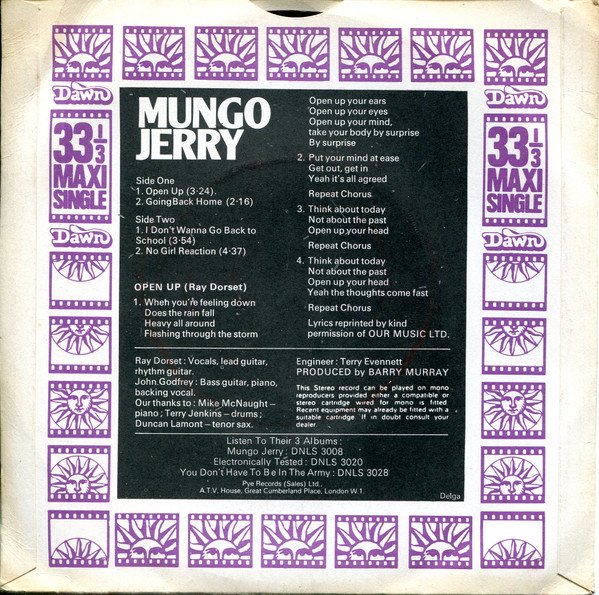 Mungo Jerry : Open Up (7", Maxi)Dawn (7)