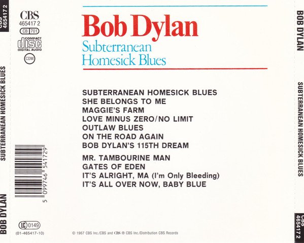 Bob Dylan – Subterranean Homesick Blues (CD, Album, RE, RP)