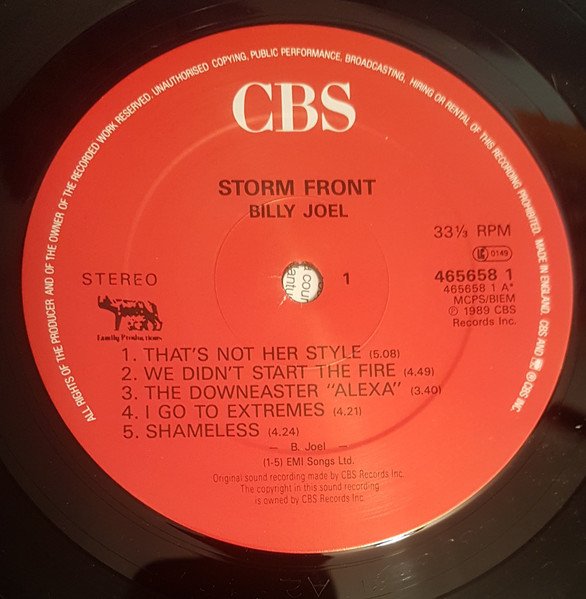 Billy Joel : Storm Front (LP, Album)CBS, Family Productions