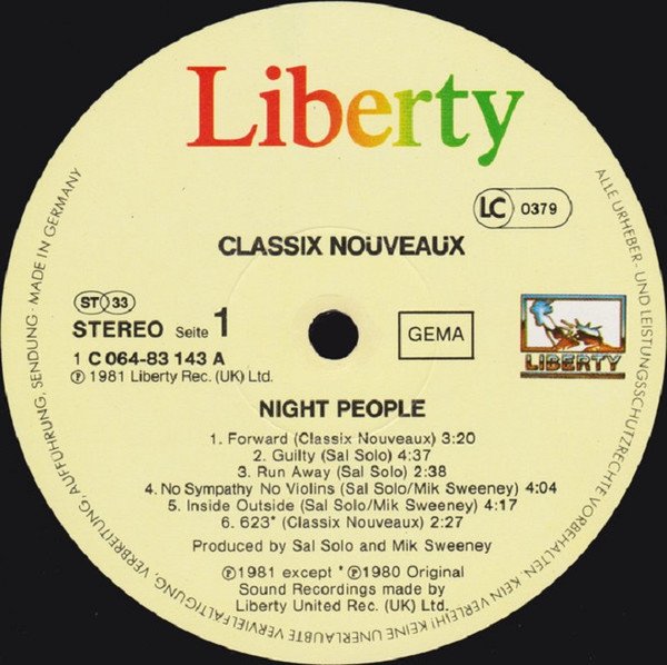 Classix Nouveaux – Night People (LP, Album)