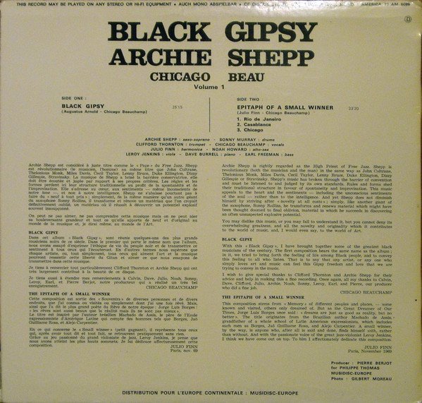 Archie Shepp, Chicago Beau – Black Gipsy (LP, Album)